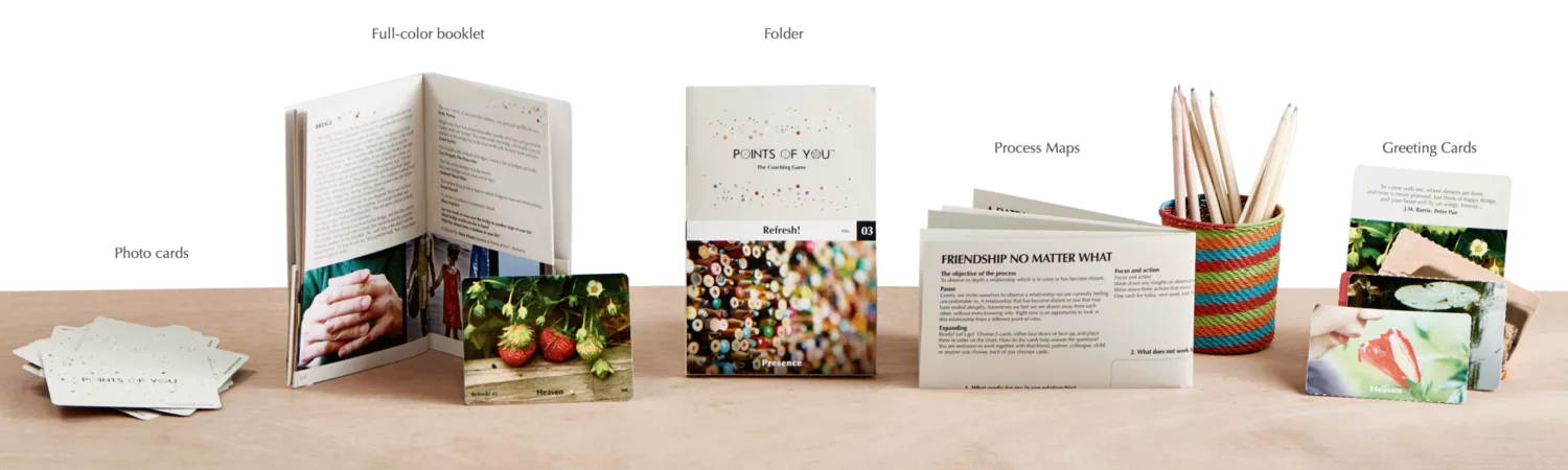 Refresh! is a set of 3 mini coaching games that together create a versatile, powerful tool for personal and professional development. Featuring new photographic images, themes and points of view, this set offers a wonderful opportunity to Refresh! and broaden your Points of You® toolset. Alternatively, it can be used as a stand-alone coaching game offering countless points of view – and meaningful opportunities to experience, explore, expand.